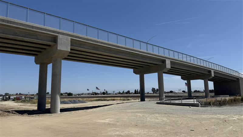 这座桥于5月23日竣工,是加州高铁项目预计于2025年竣工的第三座立交桥,也是目前已建成的54座立交桥之一,加州高铁项目计划建设93座桥。